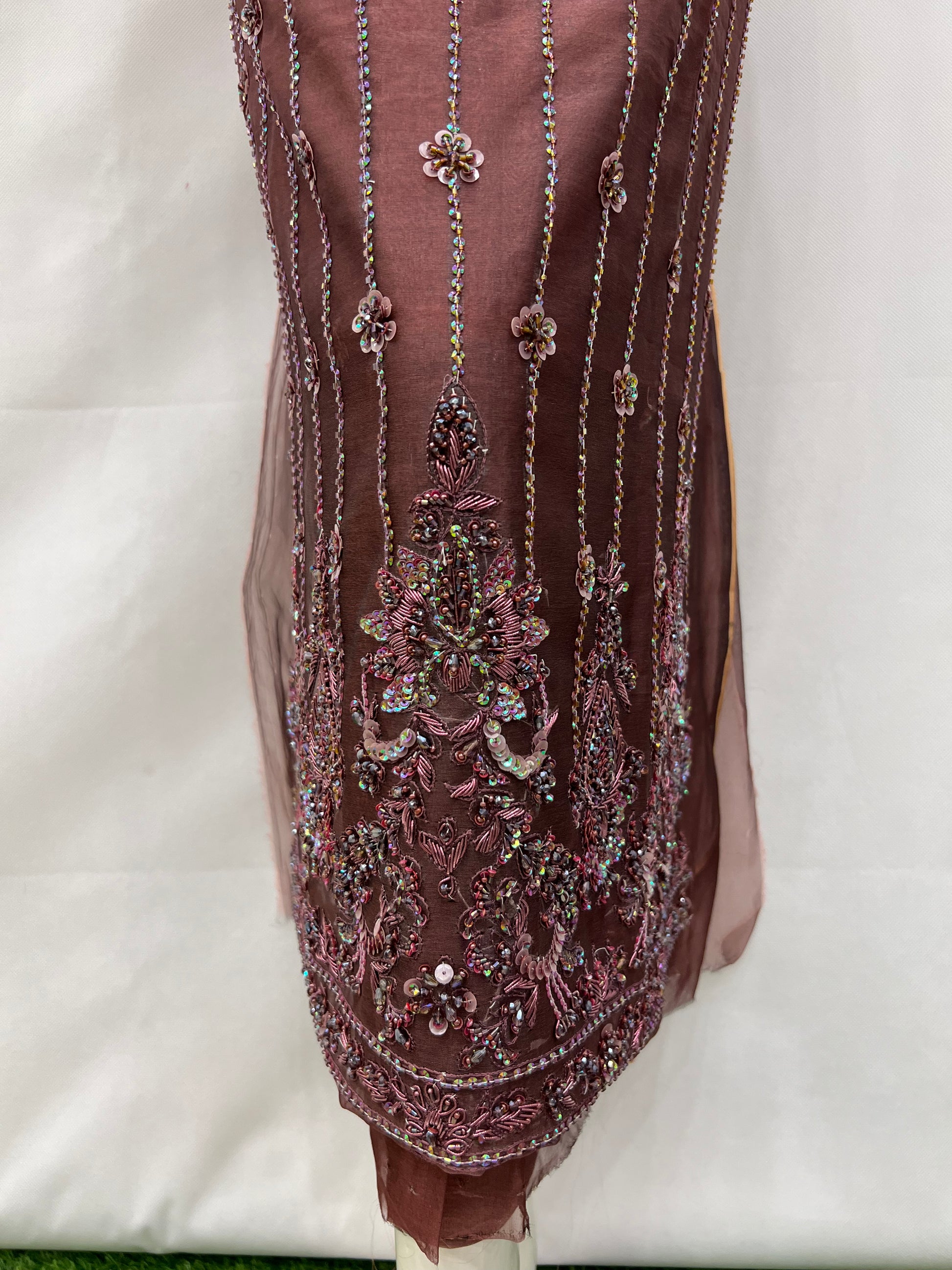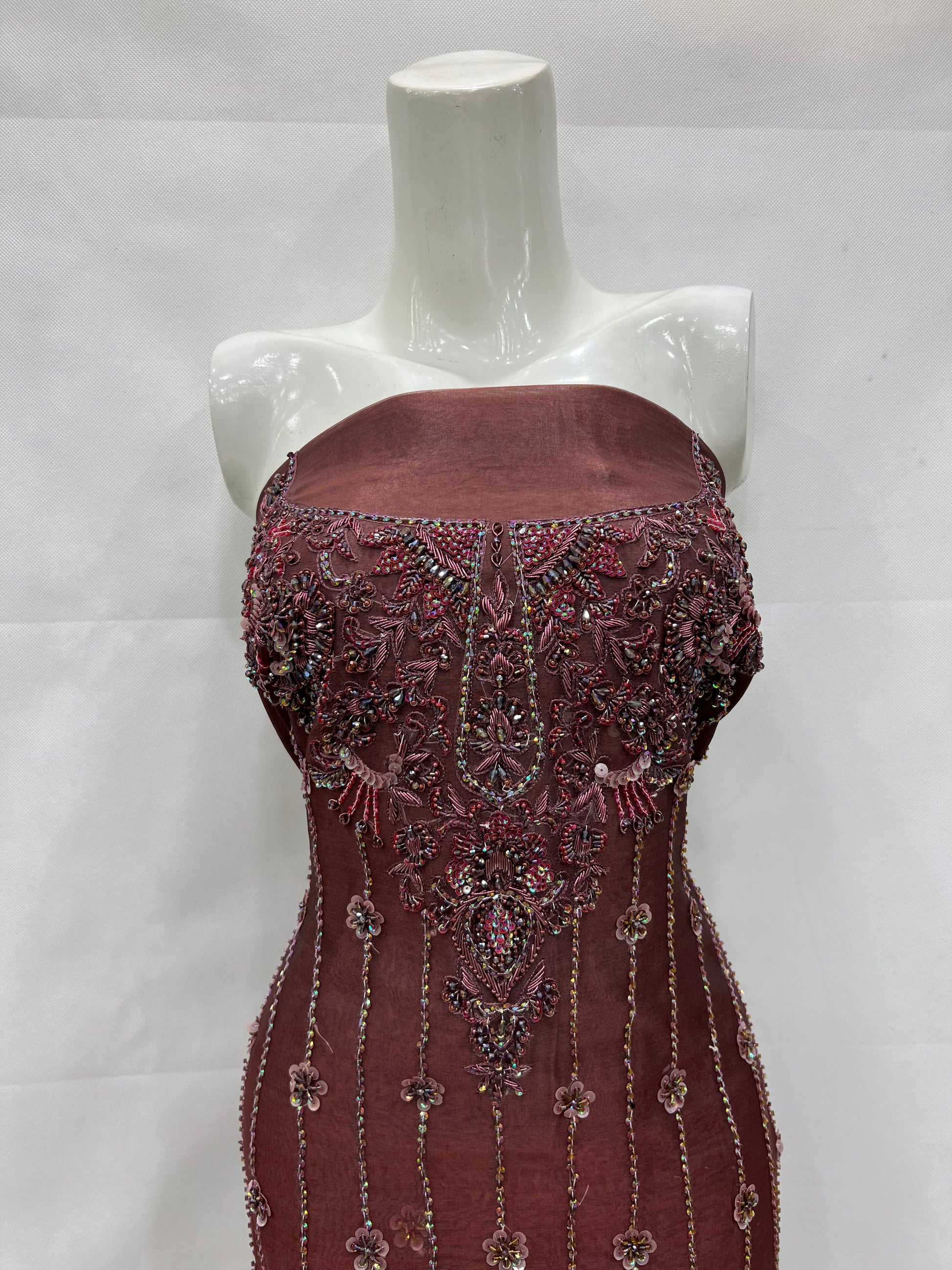 Crafted from delicate organza fabric, this base color material shirt offers a lightweight and sheer texture ideal for layering or elegant tailoring. Its translucent quality enhances any design, providing a refined foundation for sophisticated outfits. Perfect for those seeking a versatile and breathable fabric with a subtle sheen.