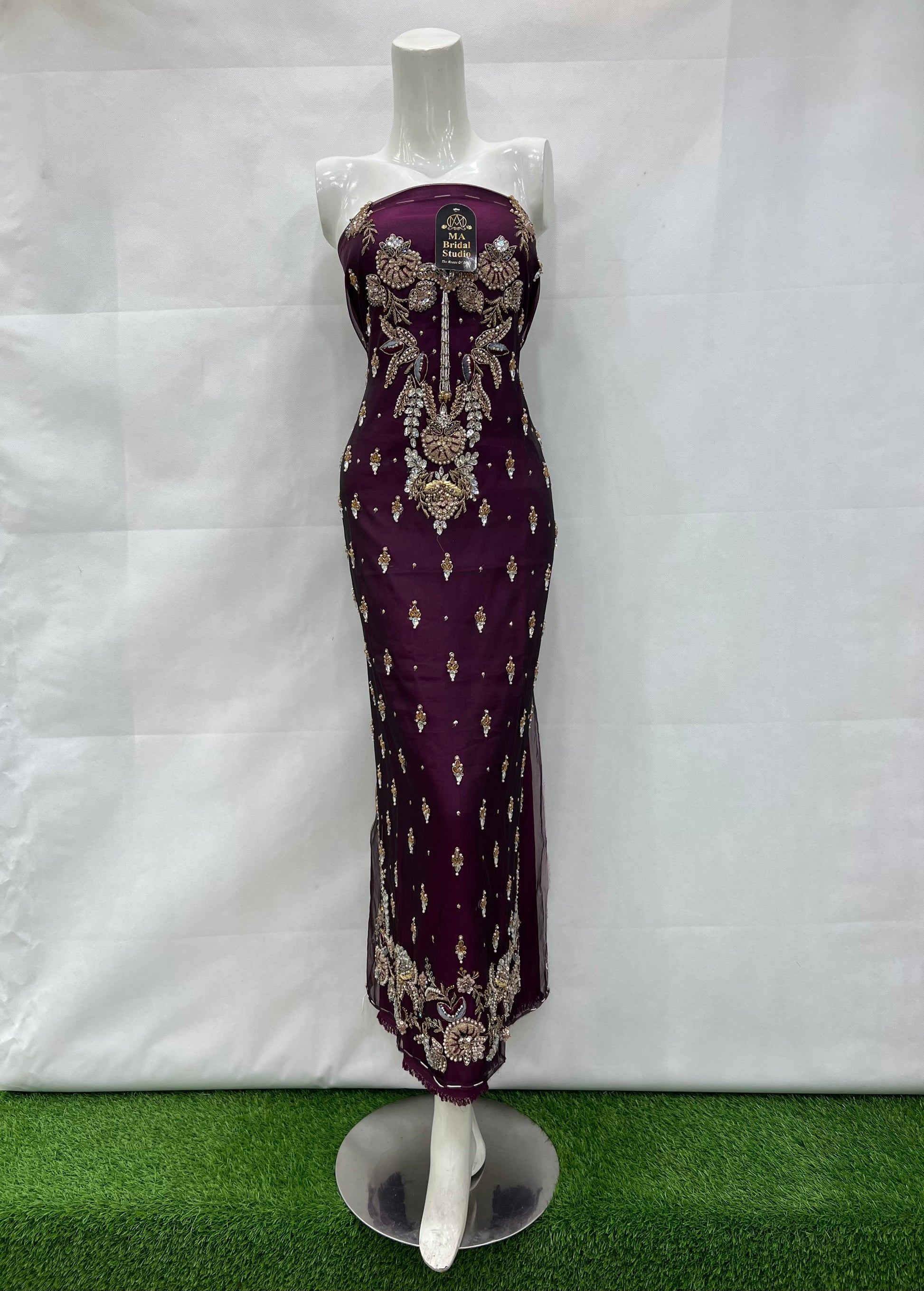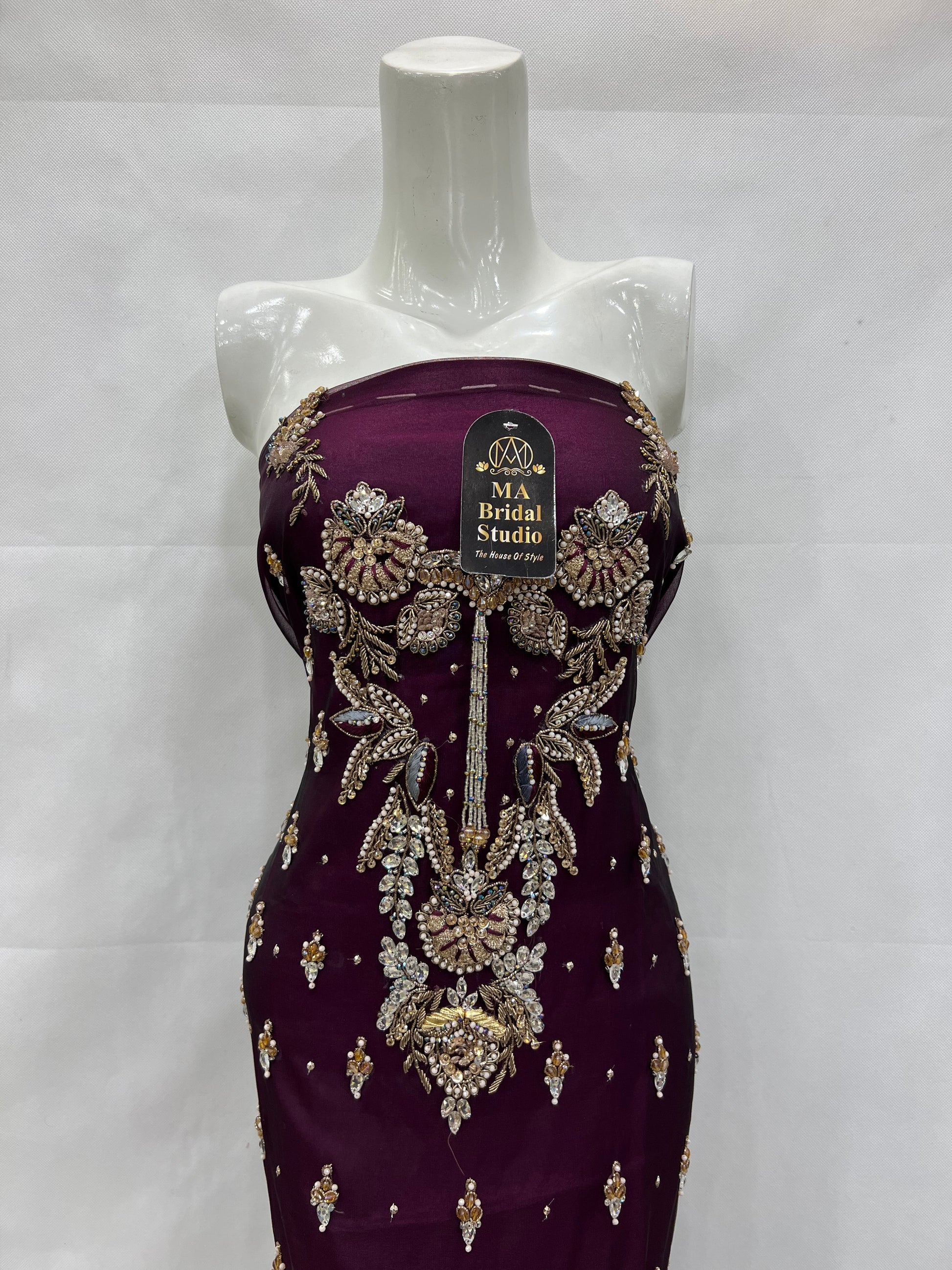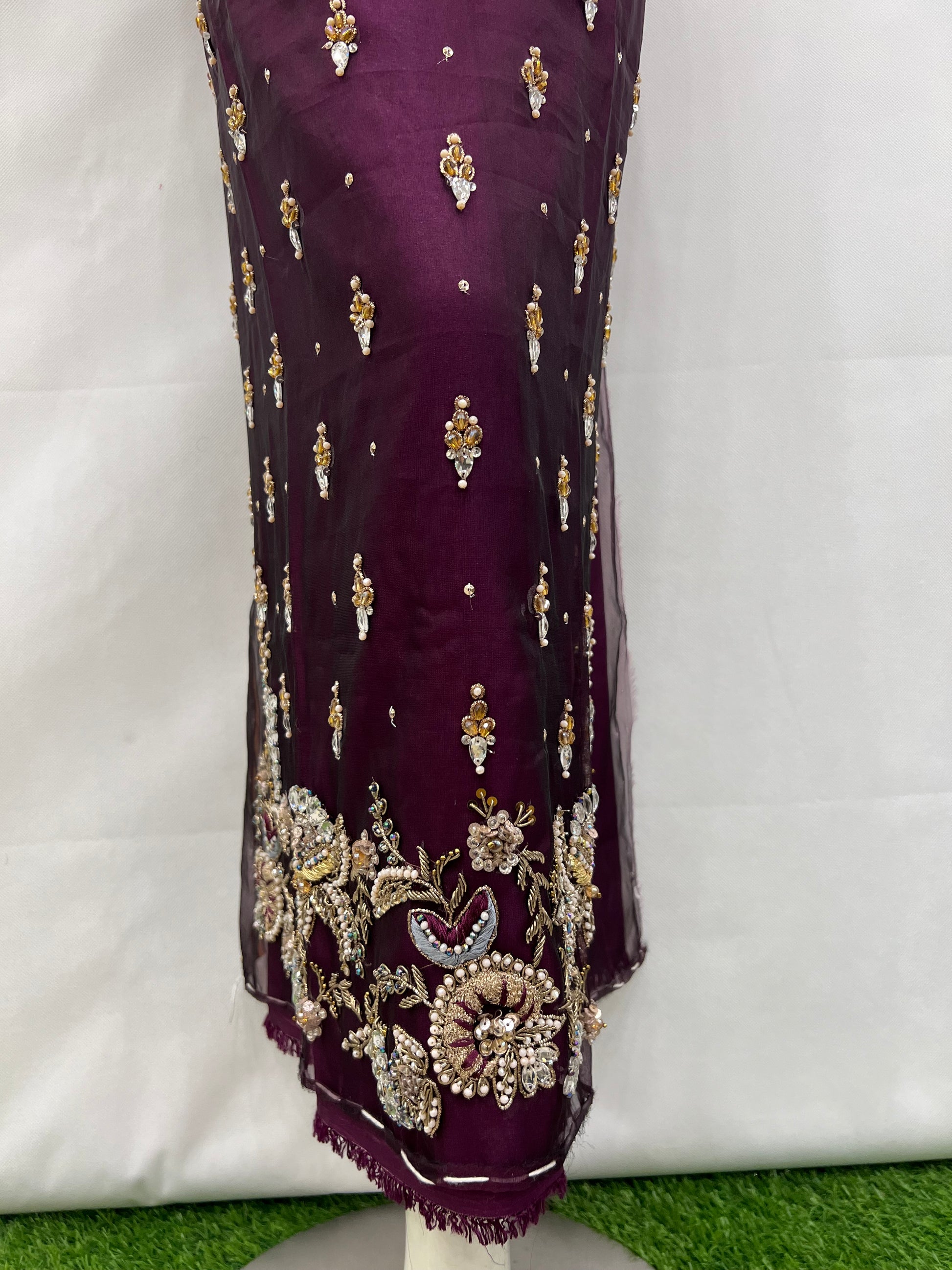 Elevate your special occasion look with this exquisite Organza Gala Daman. Crafted from double shade organza, it features intricate gala daman adorned with sparkling crystals, delicate dabka work, and detailed naqshi embroidery. This combination creates a stunning, elegant finish that enhances your outfit with subtle shimmer and refined texture, perfect for making a graceful statement at any event.