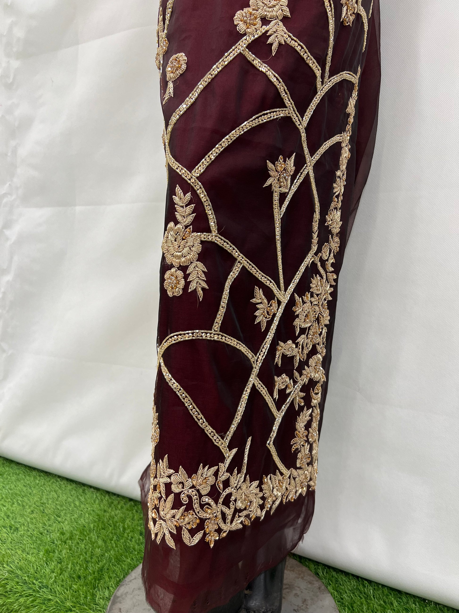 This organza long shirt features a unique double shade maroon color that adds depth and elegance to your look. Its distinctive design and flowing silhouette make it a standout piece, perfect for special occasions or stylish everyday wear. Crafted to offer both comfort and sophistication, this shirt enhances your wardrobe with timeless charm.