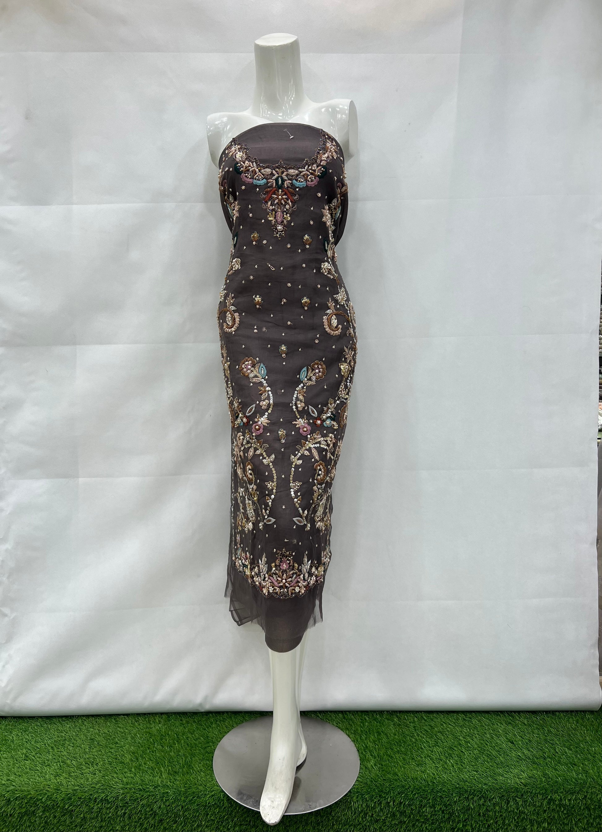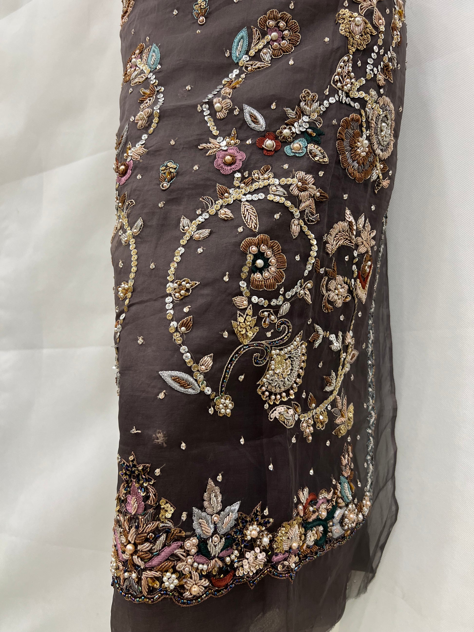 This elegant organza shirt features delicate resham embroidery, shimmering sequence accents, and intricate naqshi work, combining traditional craftsmanship with a lightweight, breathable fabric. Perfect for special occasions, it offers both comfort and a refined look that enhances your style effortlessly.