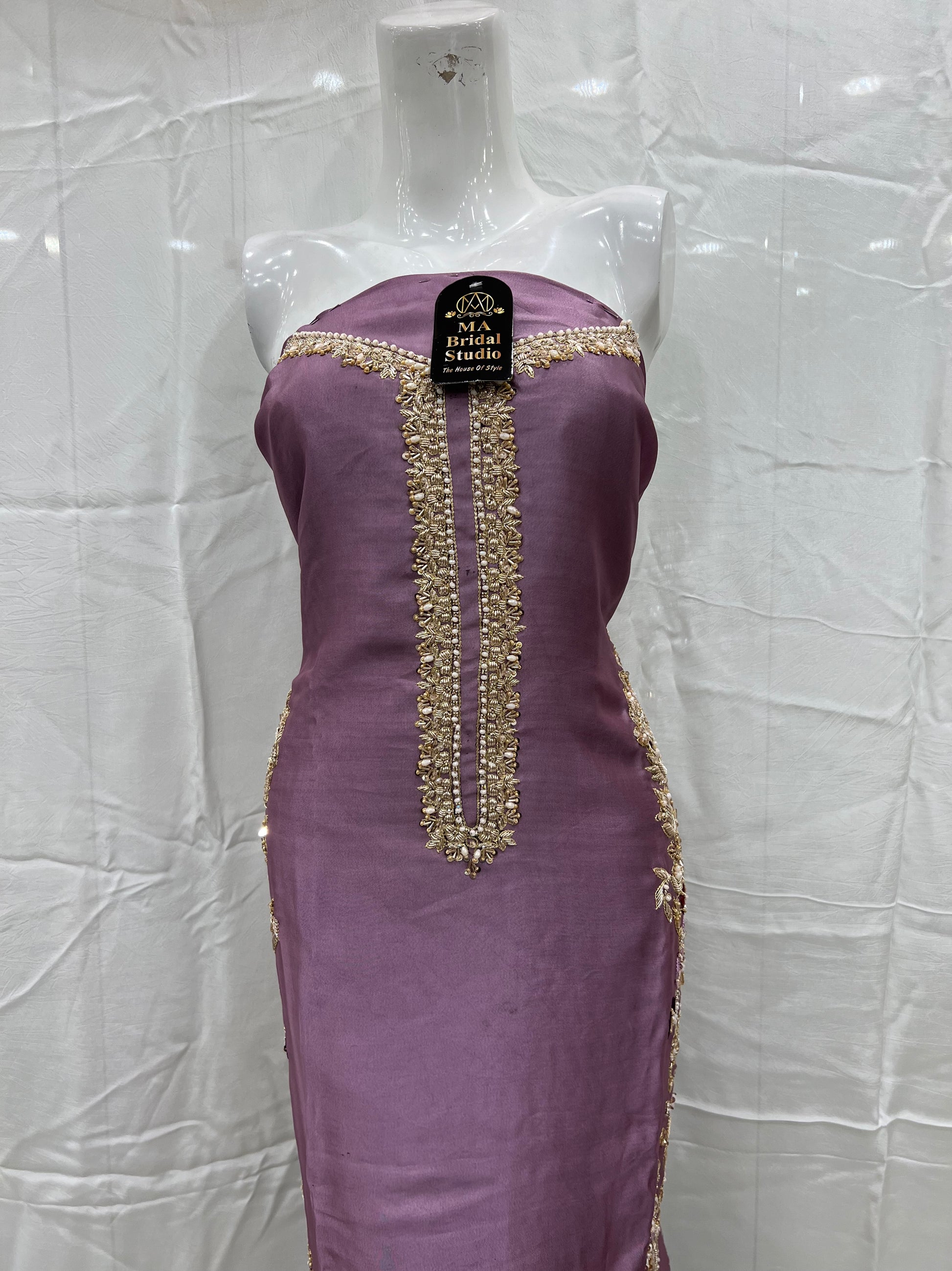 Transform your wardrobe with our stunning Silk long shirt, featuring the coveted chalk-style aesthetic you've been searching for. You'll adore the intricate dabka work that creates mesmerizing texture and dimension, while the skillful resham embroidery adds flowing elegance that catches every eye. The strategically placed crystal embellishments provide just the right amount of sparkle, ensuring you'll stand out at any gathering. Don't miss this perfect blend of traditional craftsmanship and contemporary appeal.